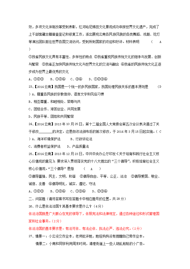 【文档名称】 2014年云南昆明中考思想品德真题及答案(Word版).doc