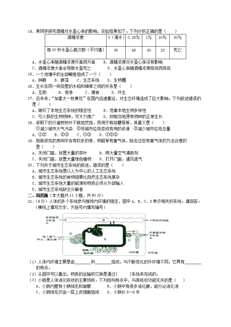 【文档名称】 2017年上海闸北中考生物真题及答案(Word版).doc