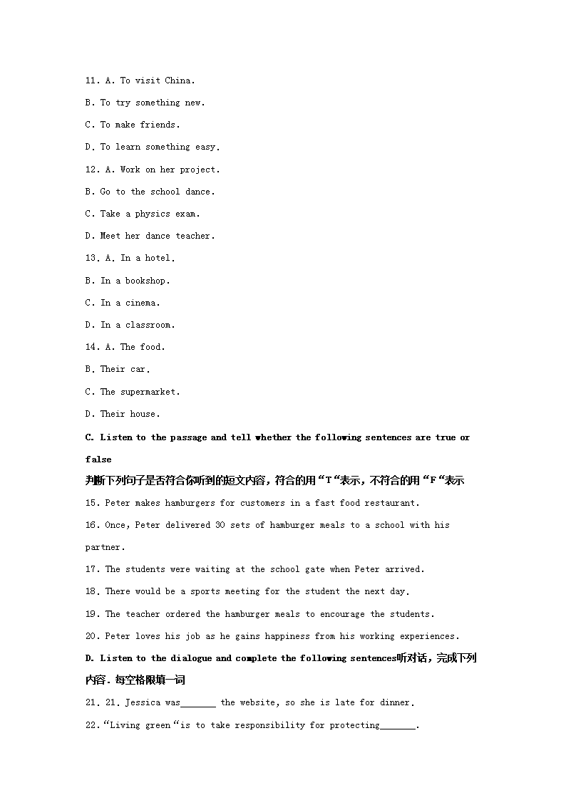 【文档预览】 无忧考网整理发布2017年上海宝山中考英语真题及答案(Word版),前五页预览如下: