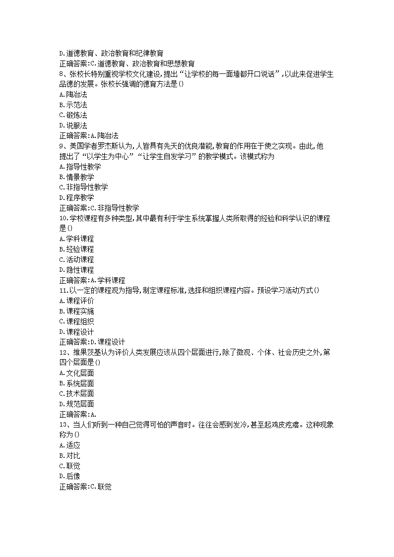 【文档名称】 2018上半年天津教师资格证中学教育知识与能力真题及答案(Word版).doc