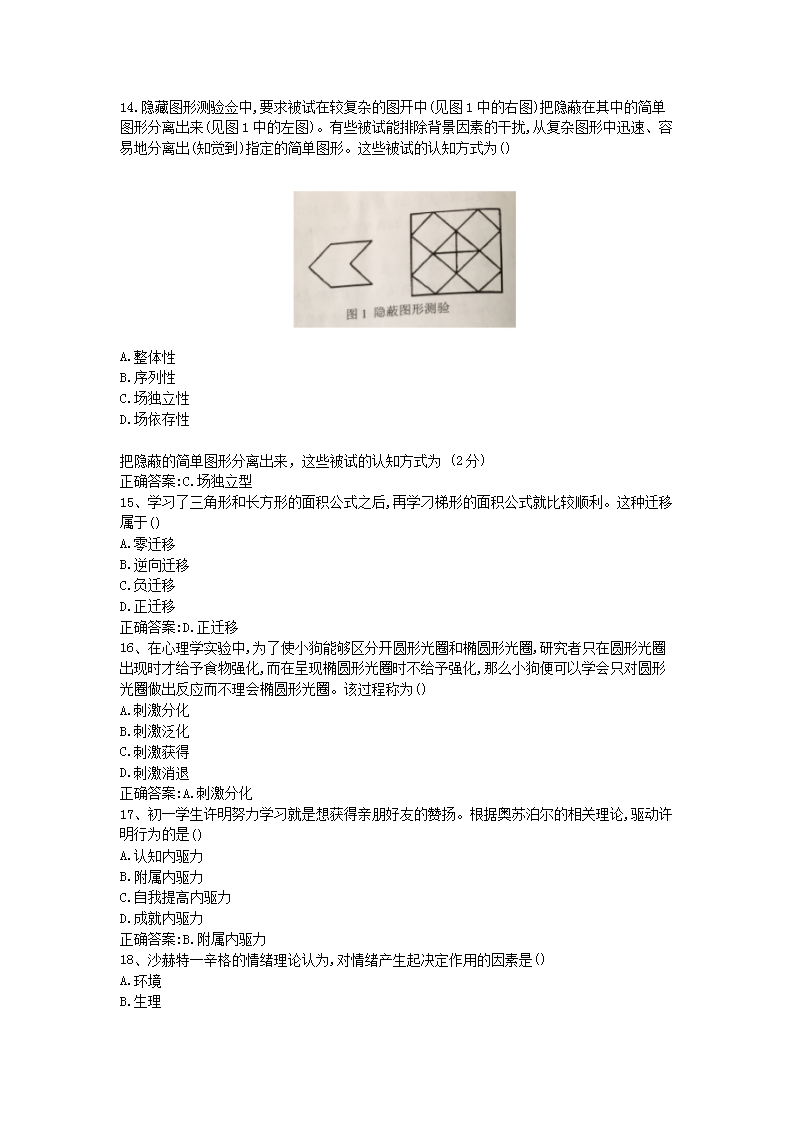 【文档预览】 无忧考网整理发布2018上半年天津教师资格证中学教育知识与能力真题及答案(Word版),前五页预览如下: