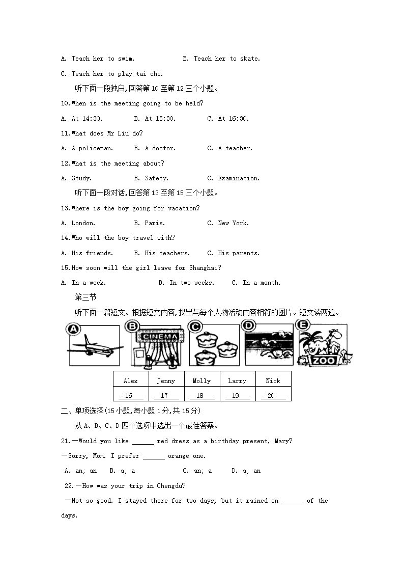 【文档预览】 无忧考网整理发布2012年河南三门峡中考英语真题及答案(Word版),前五页预览如下: