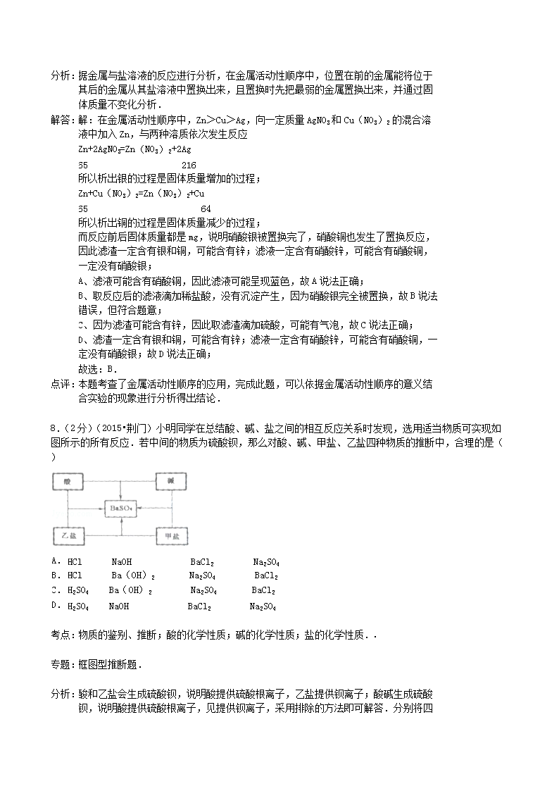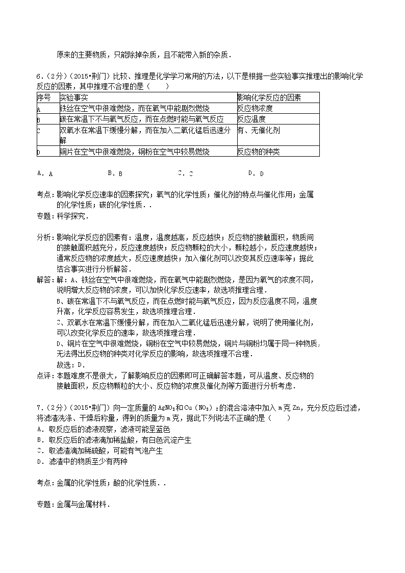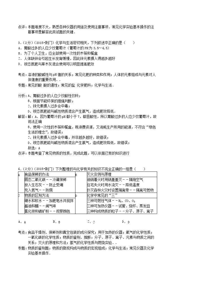【文档名称】 2015年湖北省荆门市中考化学真题及答案(Word版).doc