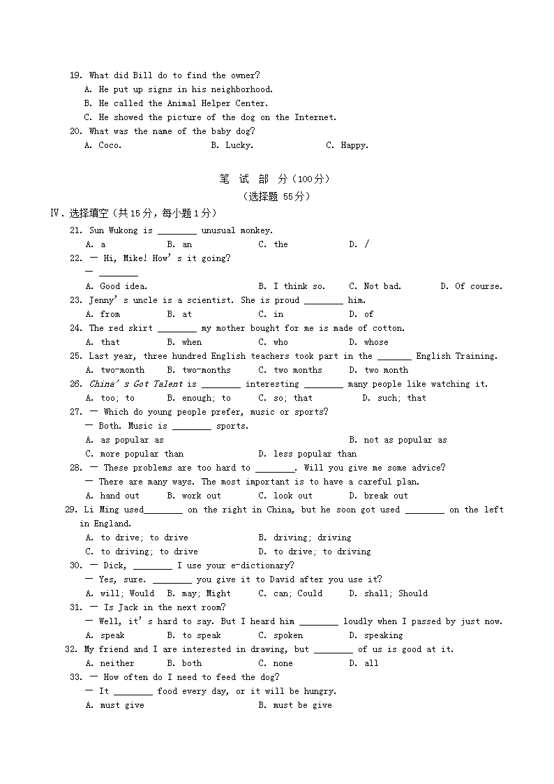【文档预览】 无忧考网整理发布2015年湖北省孝感市中考英语真题及答案(Word版),前五页预览如下: