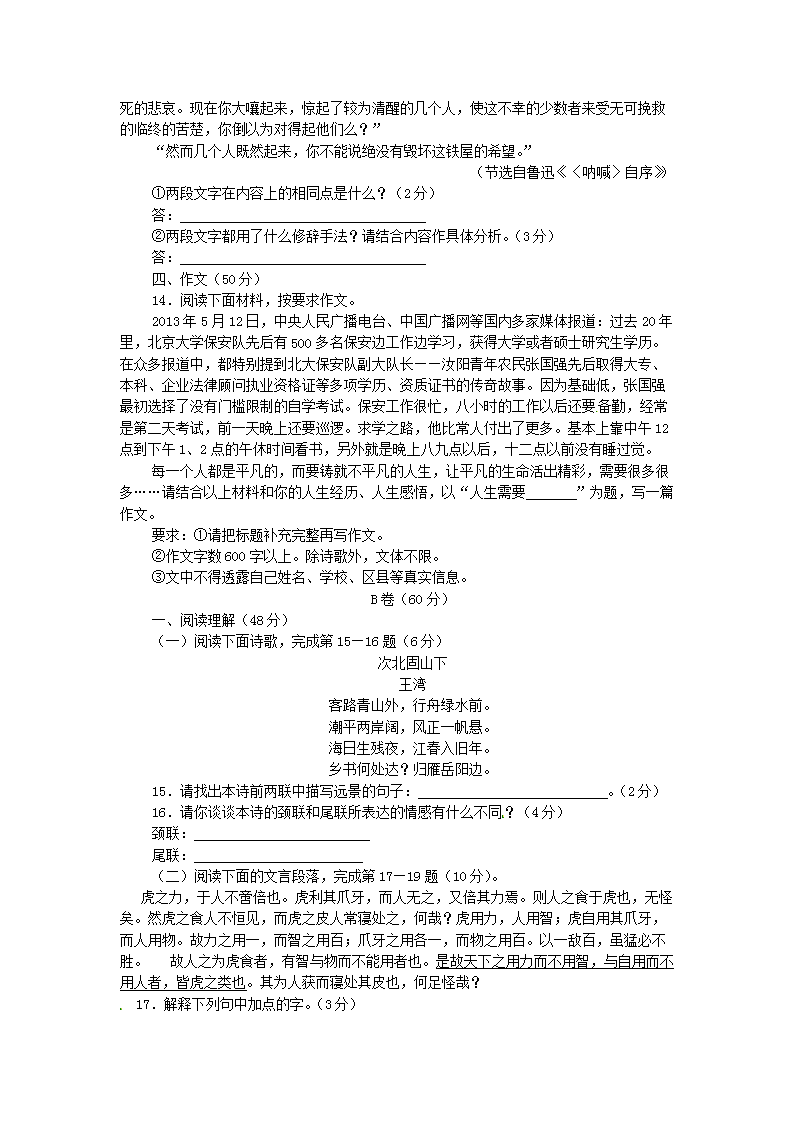 【文档预览】 无忧考网整理发布2013年四川省内江市中考语文真题及答案(Word版),前五页预览如下: