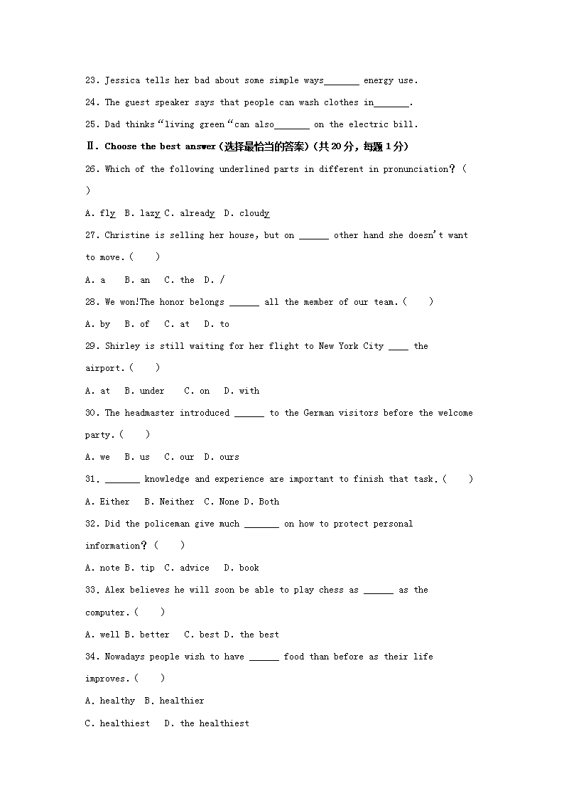 【文档预览】 无忧考网整理发布2017年上海黄浦中考英语真题及答案(Word版),前五页预览如下: