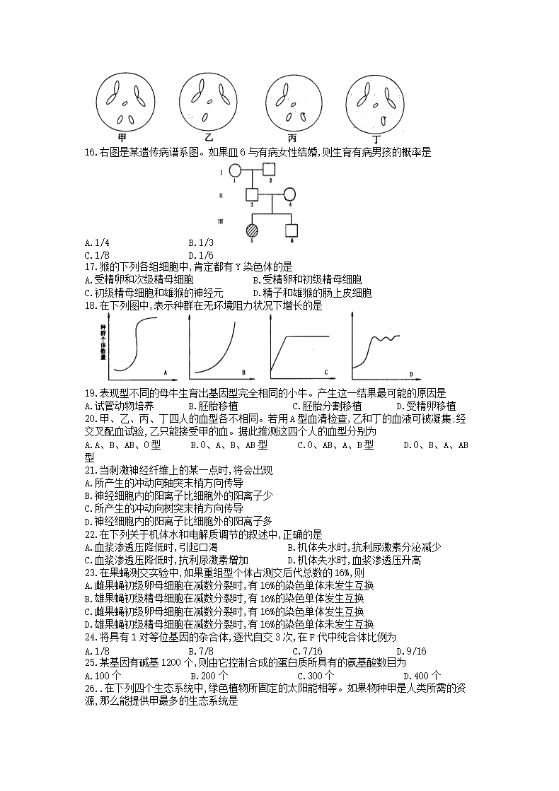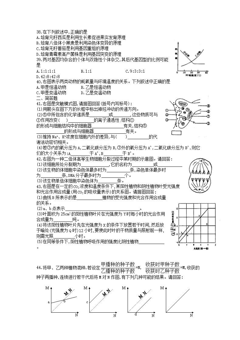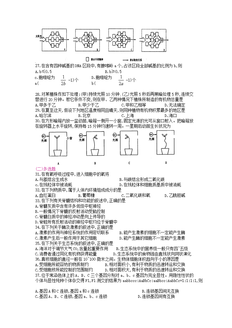 【文档名称】 1998年全国卷高考生物真题(Word版).doc