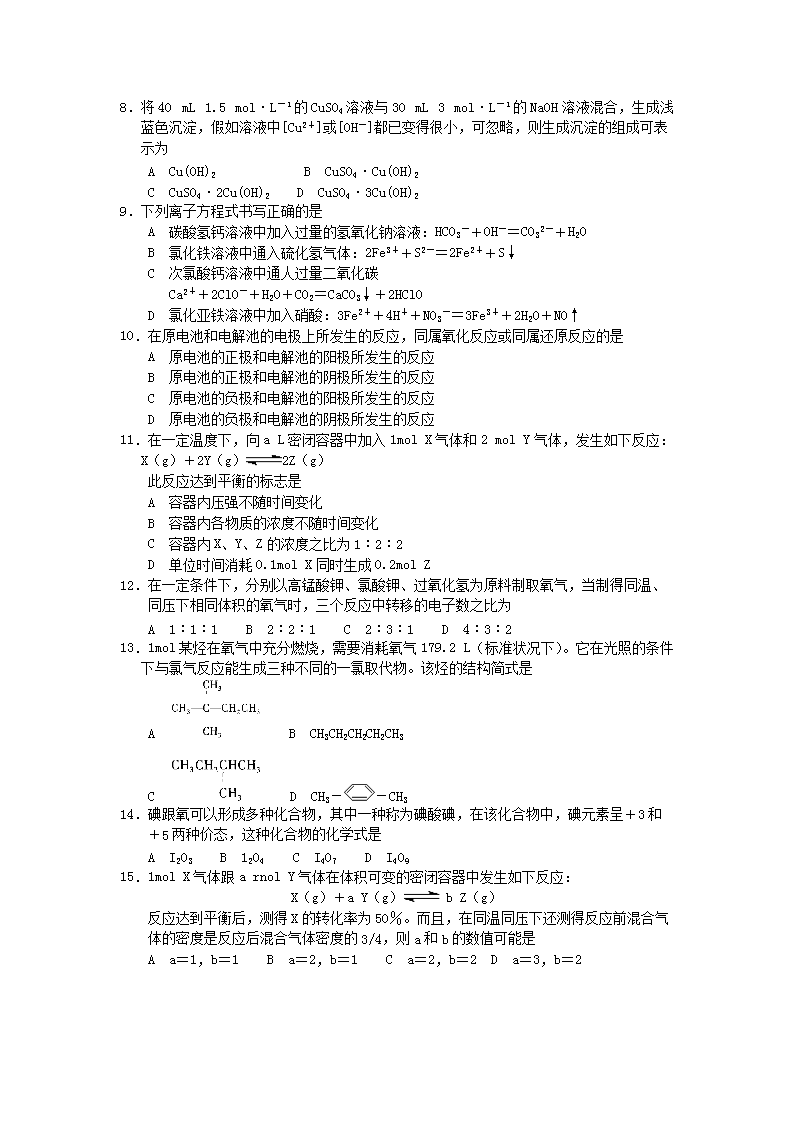 【文档预览】 无忧考网整理发布2002年河南高考化学真题及答案(Word版),前五页预览如下:
