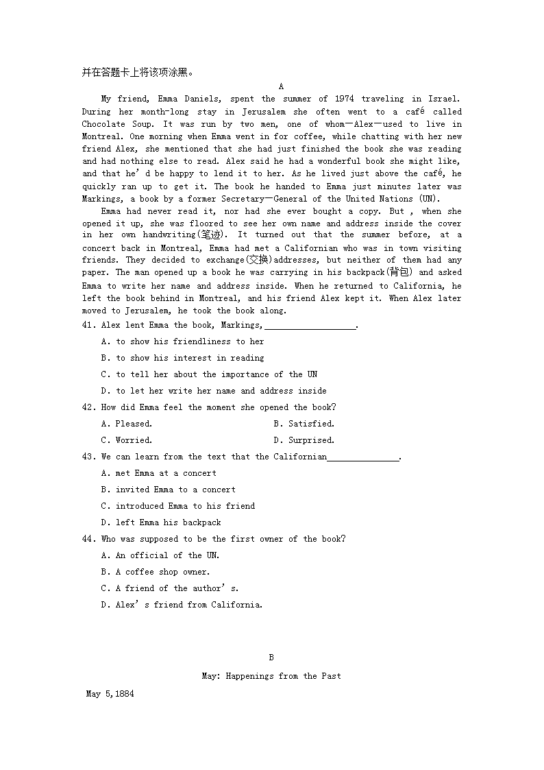 【文档名称】 2006年云南高考英语真题及答案(Word版).doc