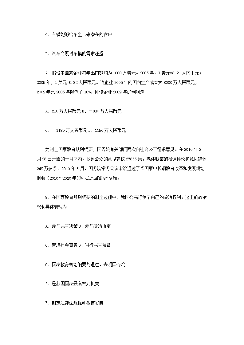 【文档名称】 2010年海南高考政治真题及答案(Word版).doc