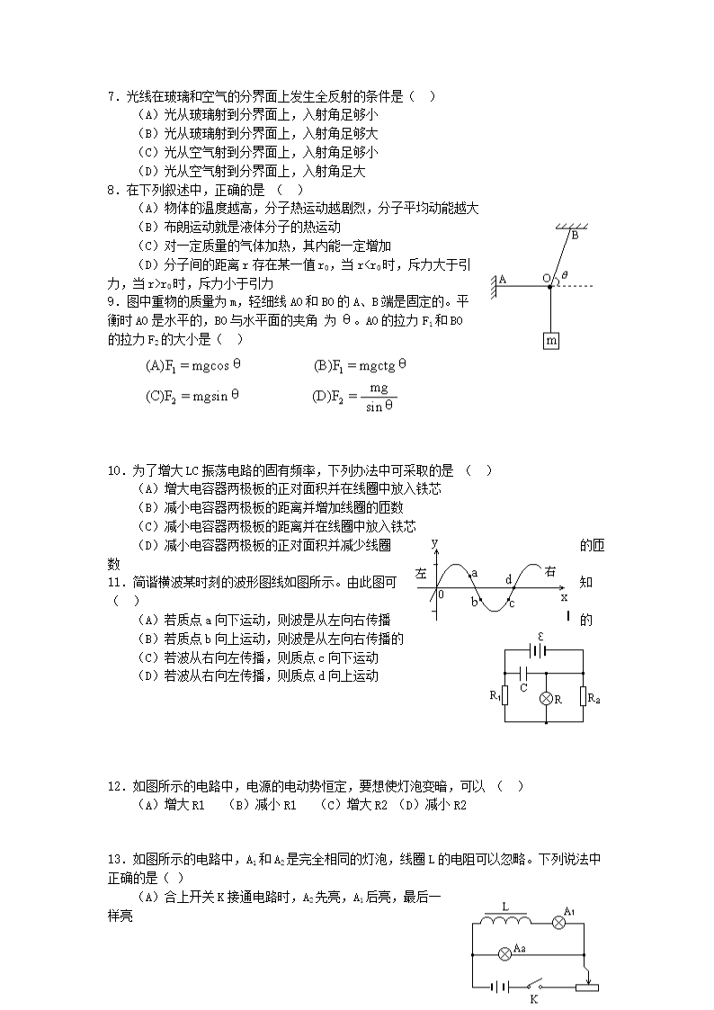 【文档名称】 1997年湖北高考物理真题及答案(Word版).doc