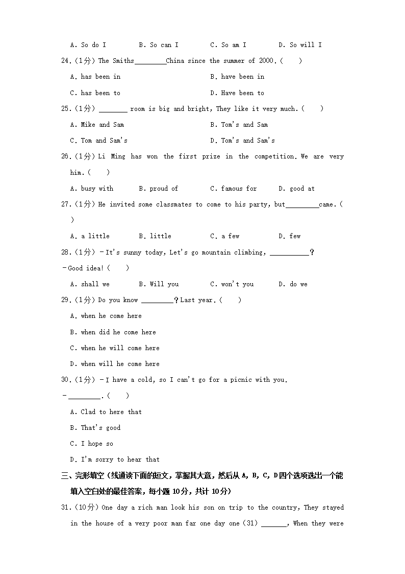 【文档名称】 2014年西藏拉萨中考英语真题及答案(Word版).doc