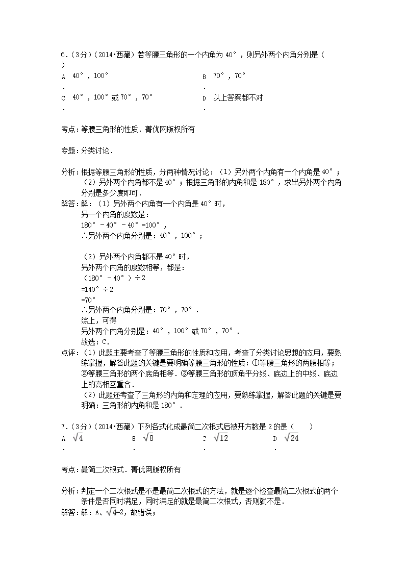 【文档预览】 无忧考网整理发布2014年西藏昌都中考数学真题及答案(Word版),前五页预览如下: