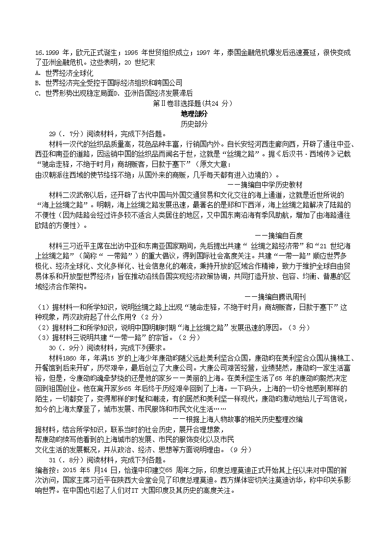 【文档名称】 2015年湖北省黄冈市中考历史真题及答案(Word版).doc