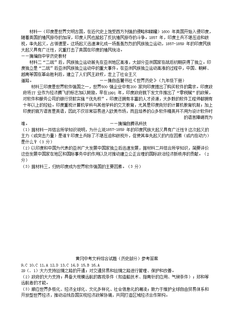 【文档预览】 无忧考网整理发布2015年湖北省黄冈市中考历史真题及答案(Word版),前五页预览如下: