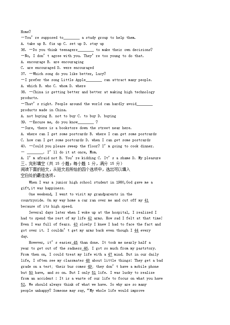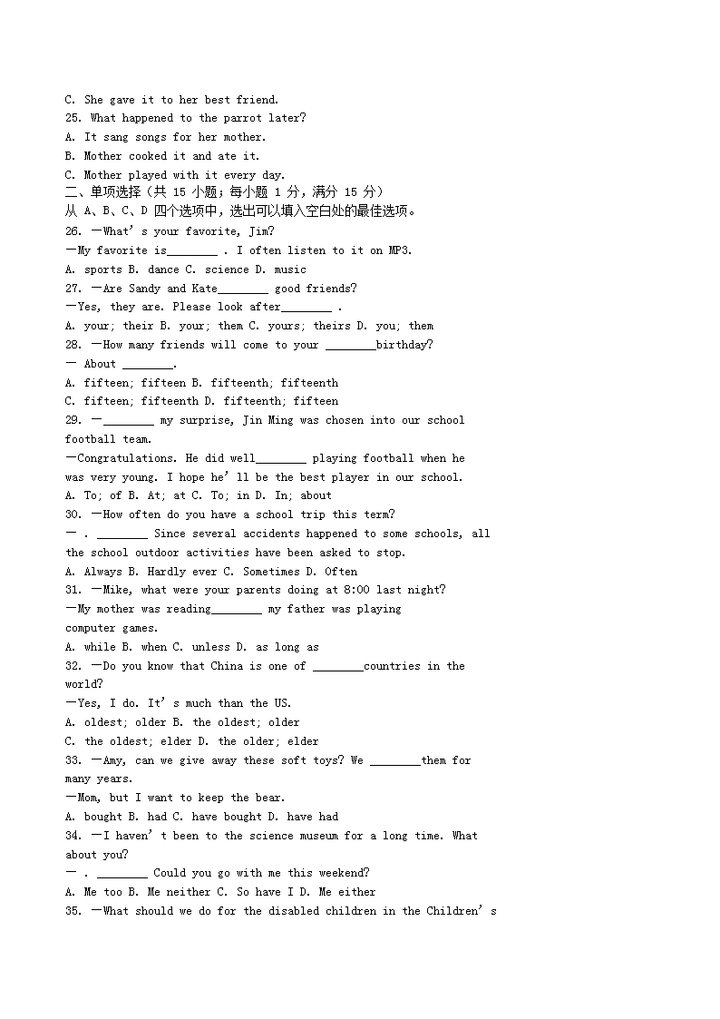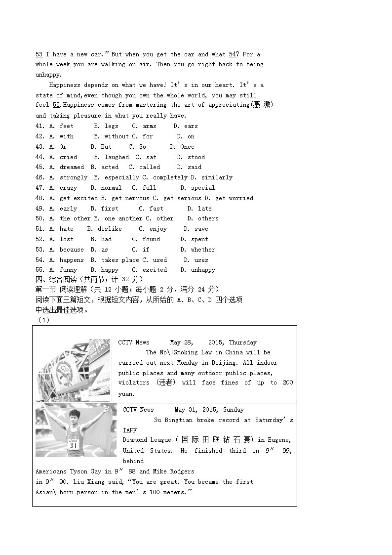 【文档名称】 2015年湖北省黄冈市中考英语真题及答案(Word版).doc