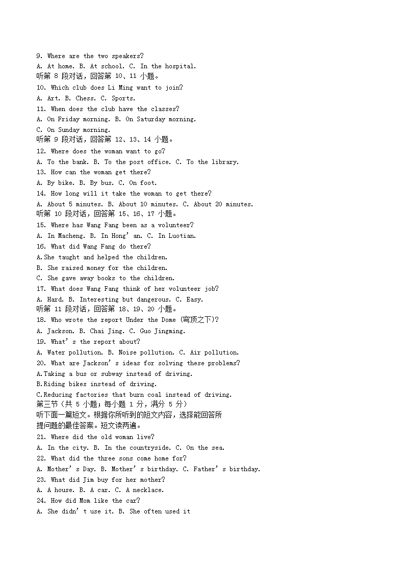 【文档预览】 无忧考网整理发布2015年湖北省黄冈市中考英语真题及答案(Word版),前五页预览如下: