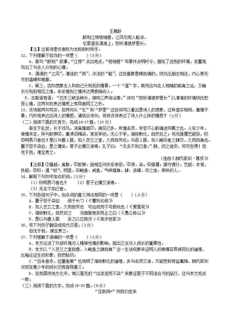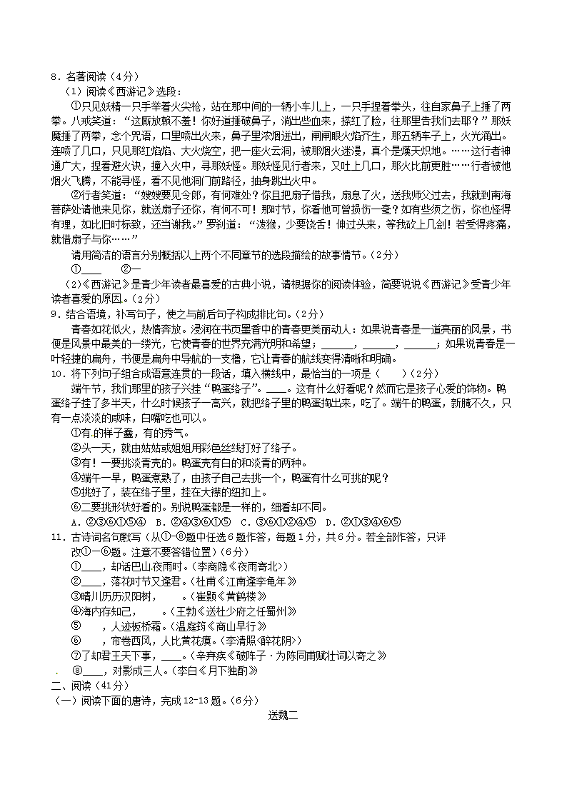 【文档名称】 2015年湖北省随州市中考语文真题及答案(Word版).doc