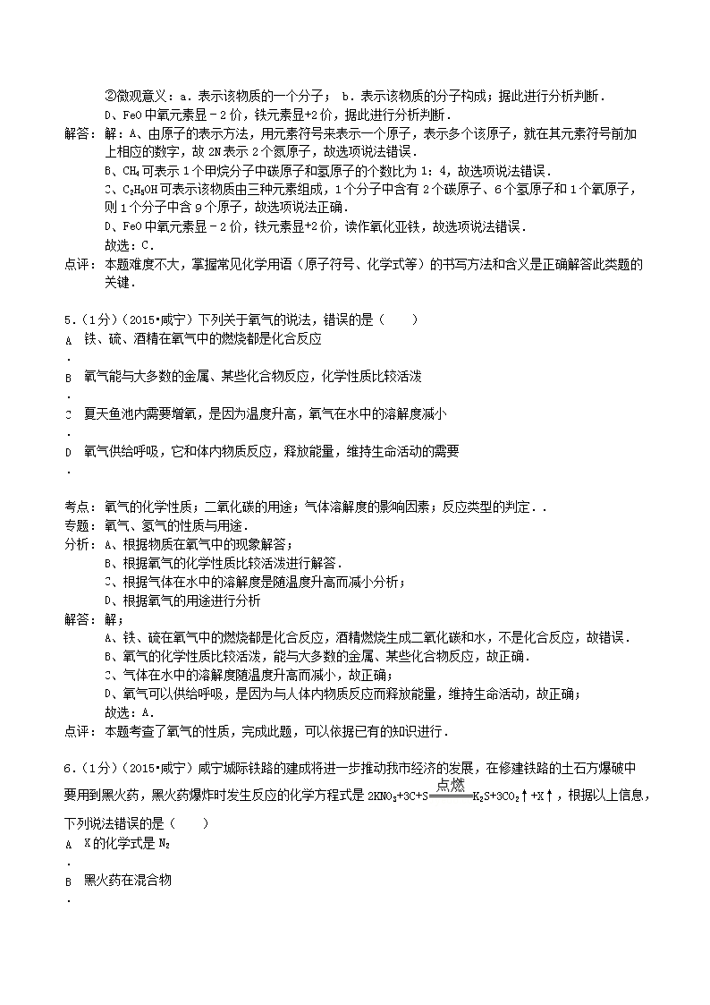 【文档预览】 无忧考网整理发布2015年湖北省咸宁市中考化学真题及答案(Word版),前五页预览如下:
