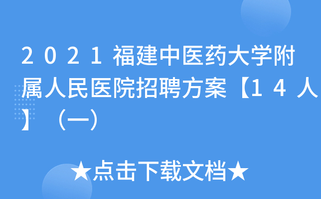 福建中医药大学附属人民医院(暨福建省人民医院)创建于1954年,是解放后福建省人民政府创办的首家公立医院,为福建中医药大学第一临床医学院(隶属于福建中医药大学)。是一所集医疗、教学、科研和预防、保健、康复为一体的三级甲等综合性中医医院。因工作需要,福建中医药大学附属人民医院拟向社会公开招聘工作人员14名。根据《福建省省属事业单位公开招聘工作人员考试暂行办法》的规定,制定具体方案如下: