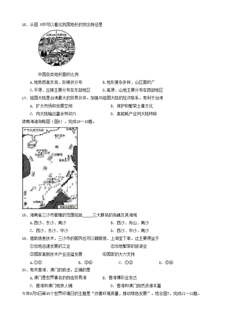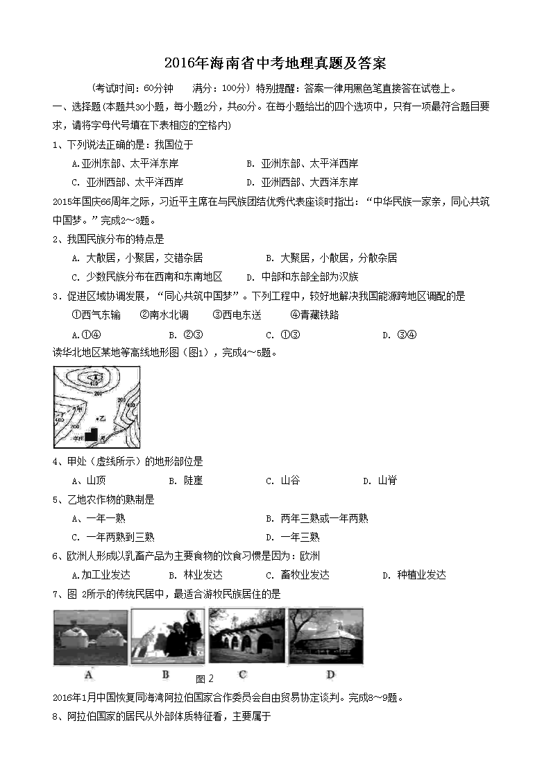 【文档名称】 2016年海南省中考地理真题及答案(Word版).doc