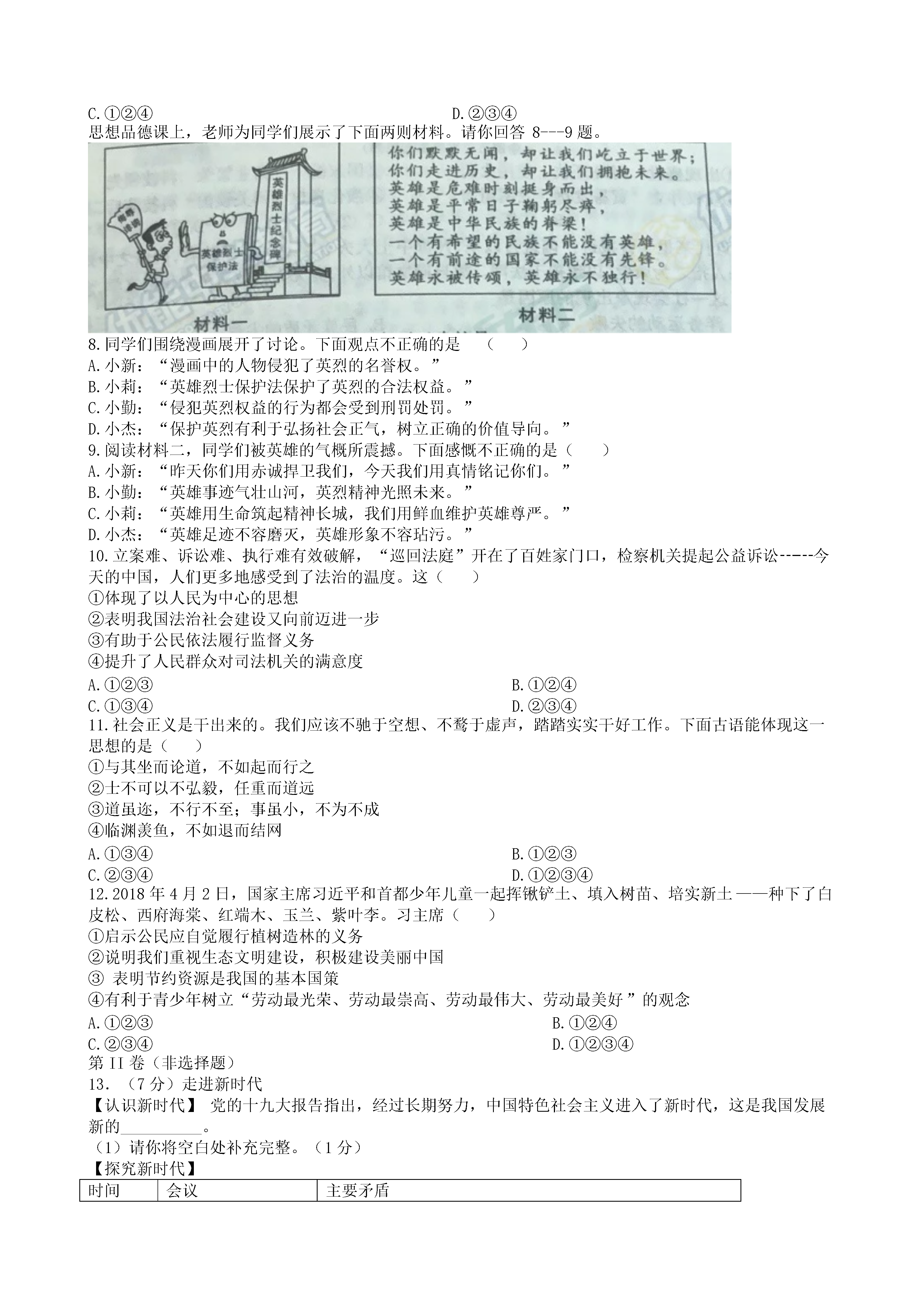 【文档名称】 2018陕西省汉中中考政治真题及答案(Word版).doc