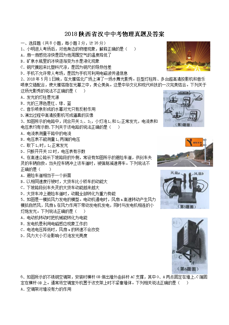 【文档预览】 无忧考网整理发布2018陕西省汉中中考物理真题及答案(Word版),前五页预览如下: