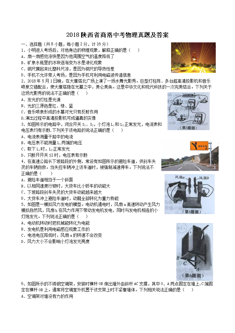 【文档预览】 无忧考网整理发布2018陕西省商洛中考物理真题及答案(Word版),前五页预览如下: