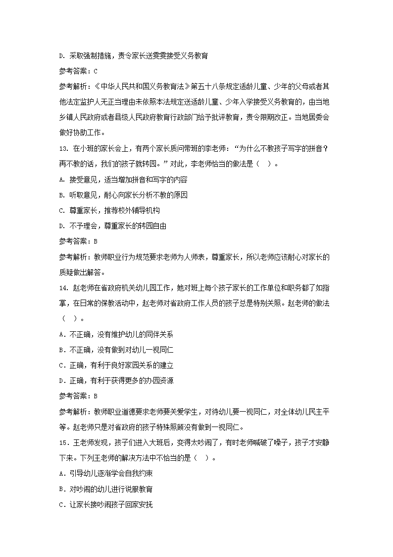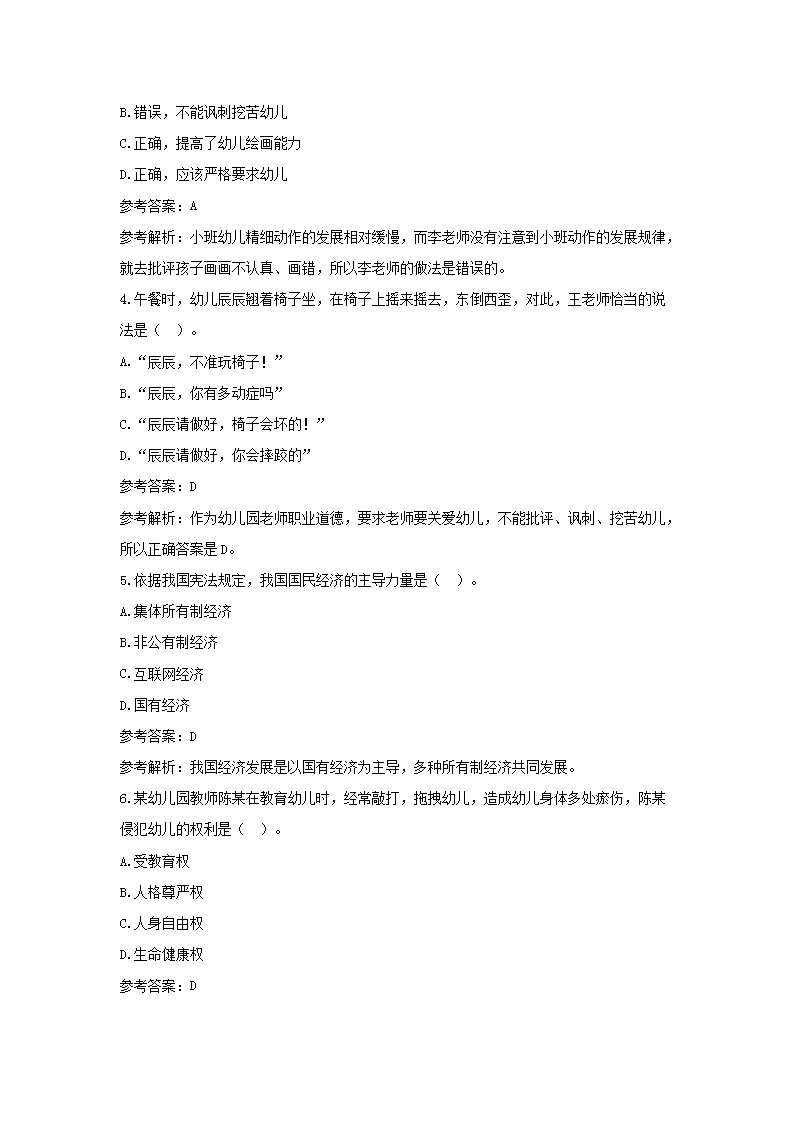【文档名称】 2019上半年湖北教师资格考试幼儿综合素质真题及答案(Word版).doc