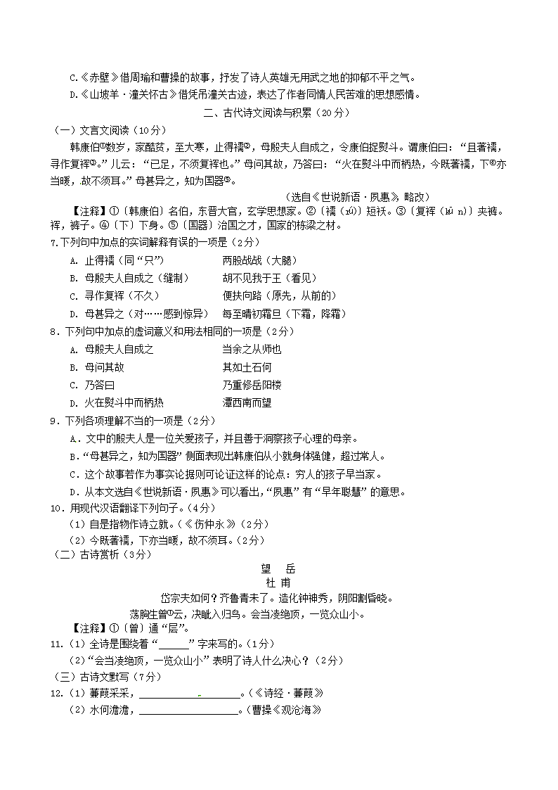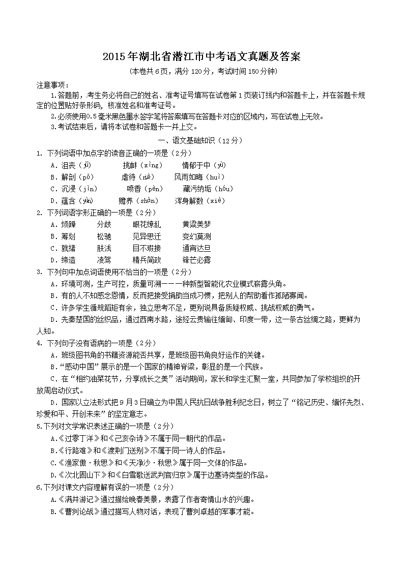 【文档名称】 2015年湖北省潜江市中考语文真题及答案(Word版).doc