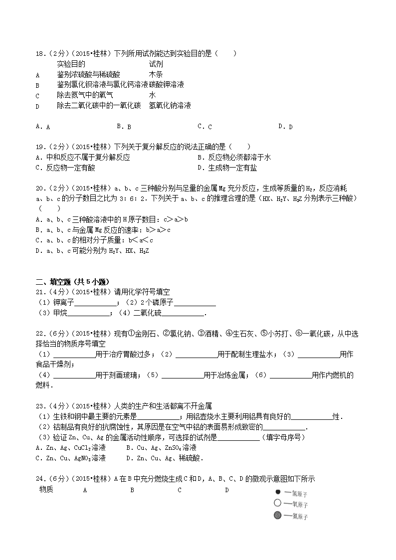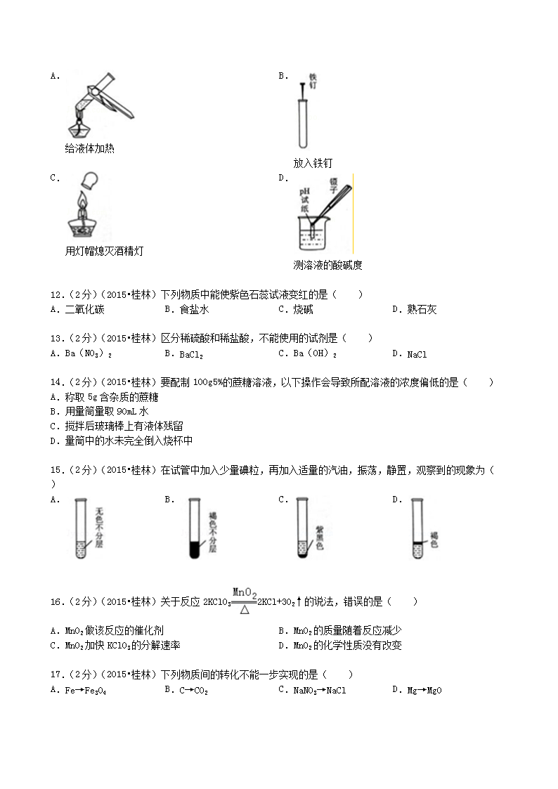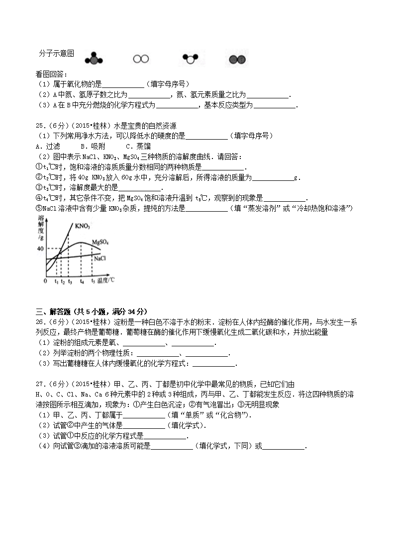 【文档名称】 2015年广西桂林市中考化学真题及答案(Word版).doc