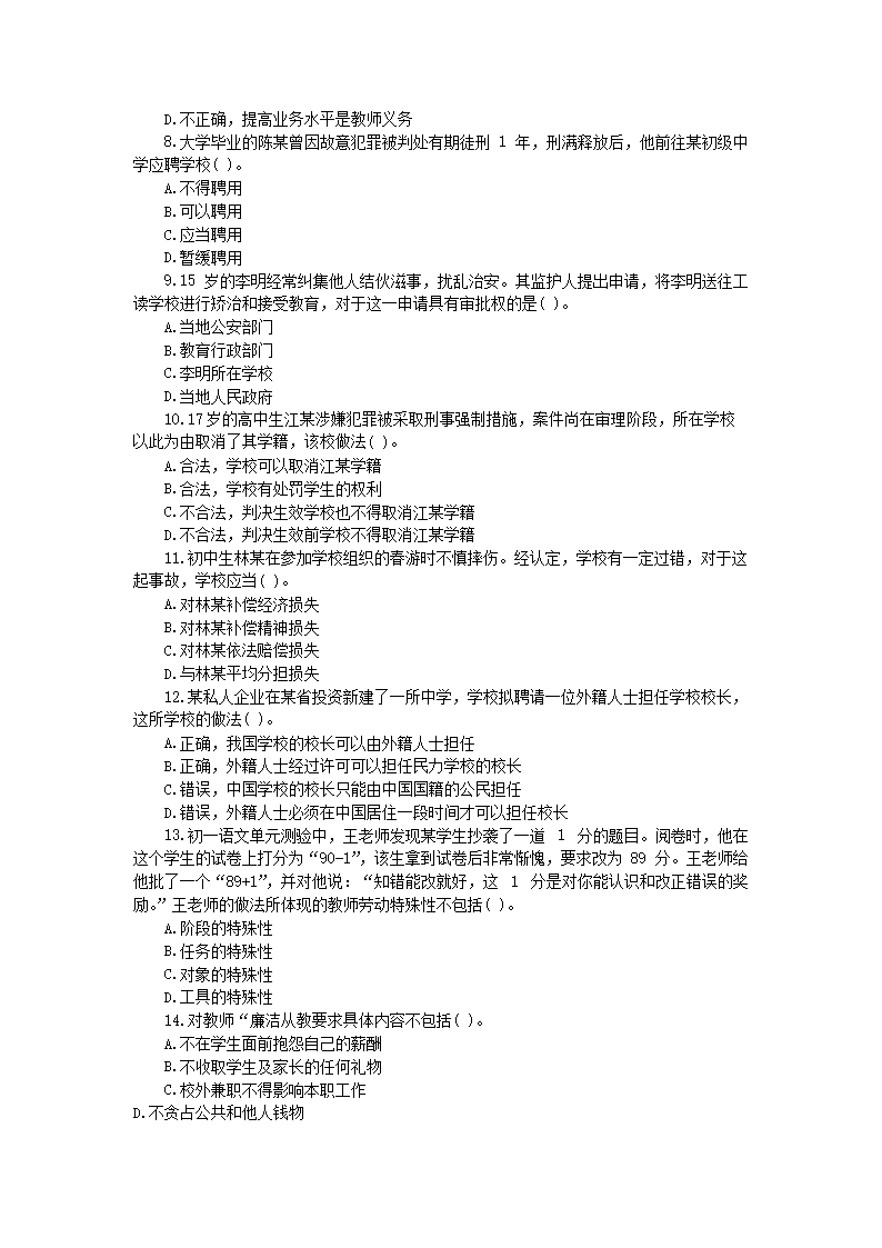 【文档名称】 2019上半年江苏教师资格考试中学综合素质真题及答案(Word版).doc