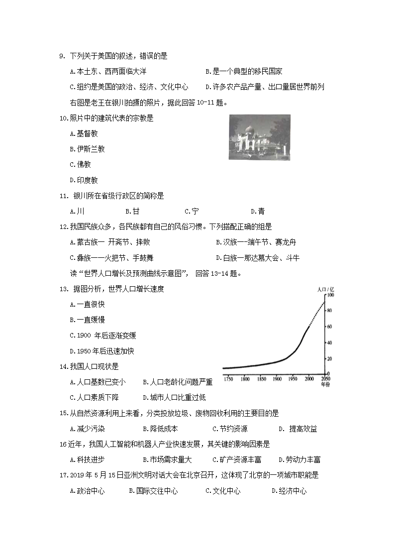 【文档名称】 2019年云南大理中考地理真题及答案(Word版).doc
