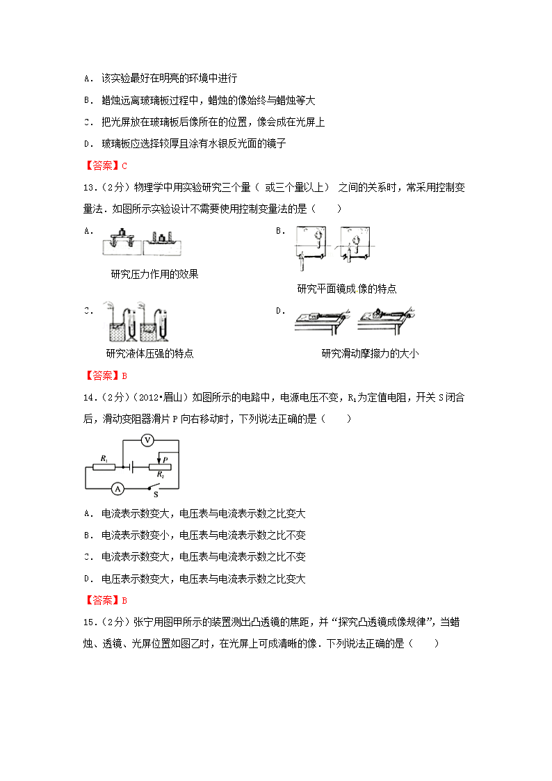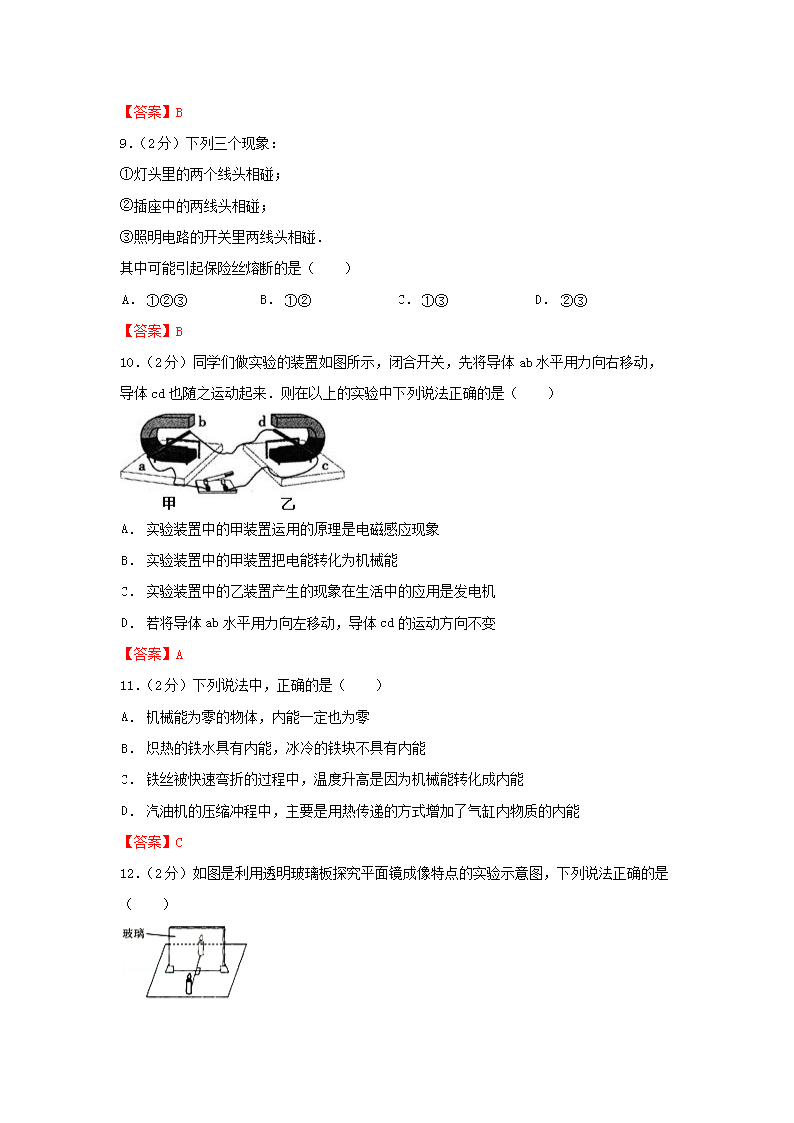 【文档名称】 2013年四川省雅安市中考物理真题及答案(Word版).doc