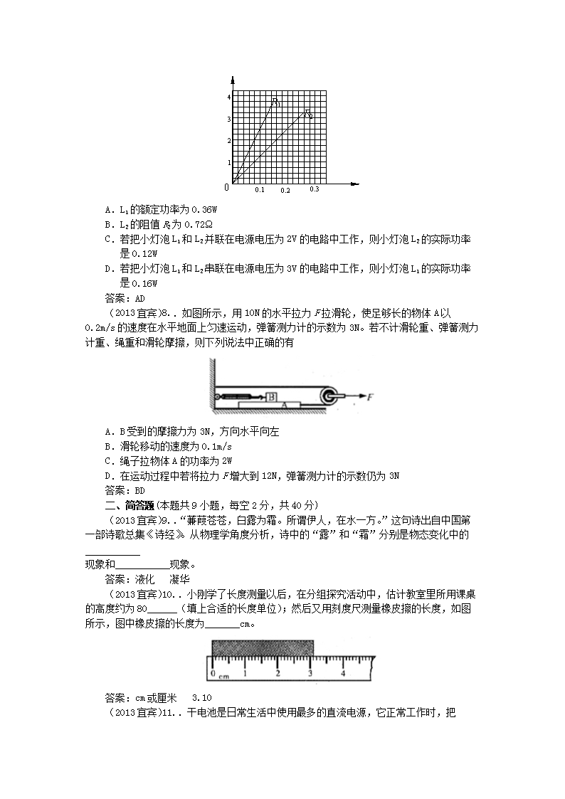 【文档名称】 2013年四川省宜宾市中考物理真题及答案(Word版).doc