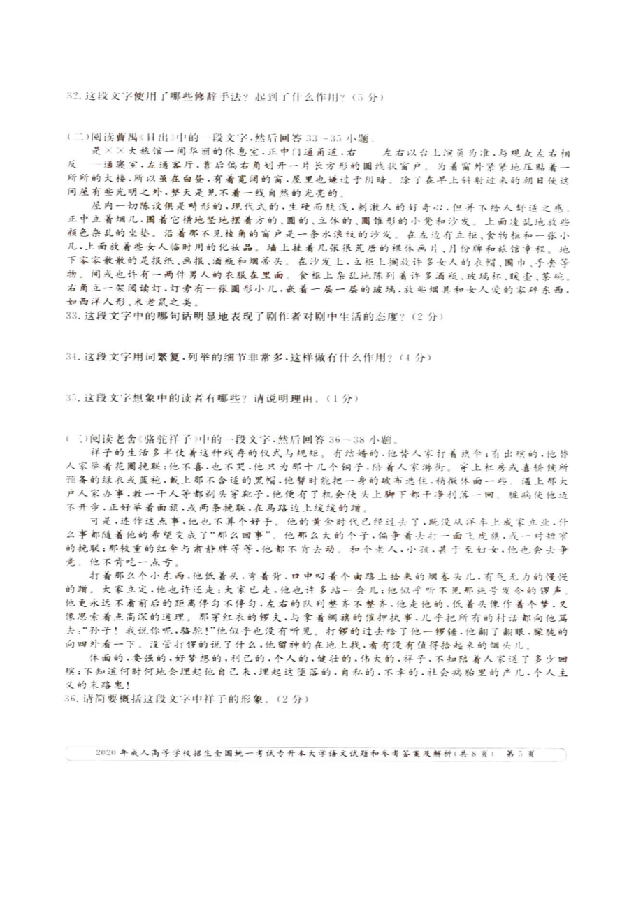 【文档预览】 无忧考网整理发布2020年吉林成人高考专升本大学语文真题及答案(图片版),前五页预览如下: