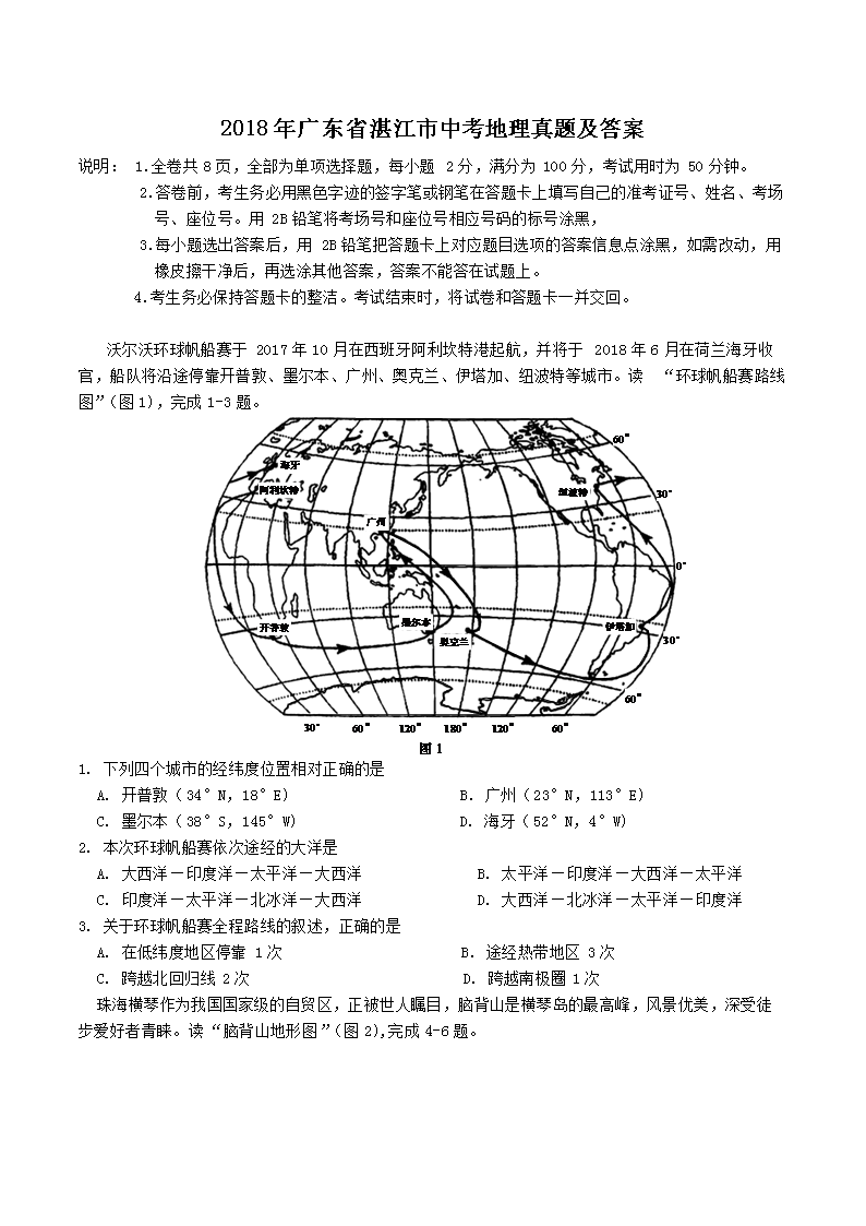 【文档名称】 2018年广东省湛江市中考地理真题及答案(Word版).doc