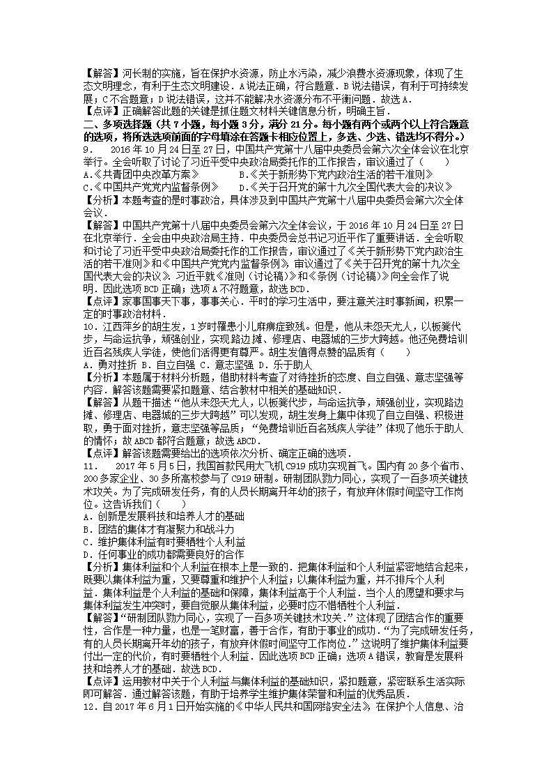 【文档名称】 2017年江西抚州中考政治真题及答案(Word版).doc