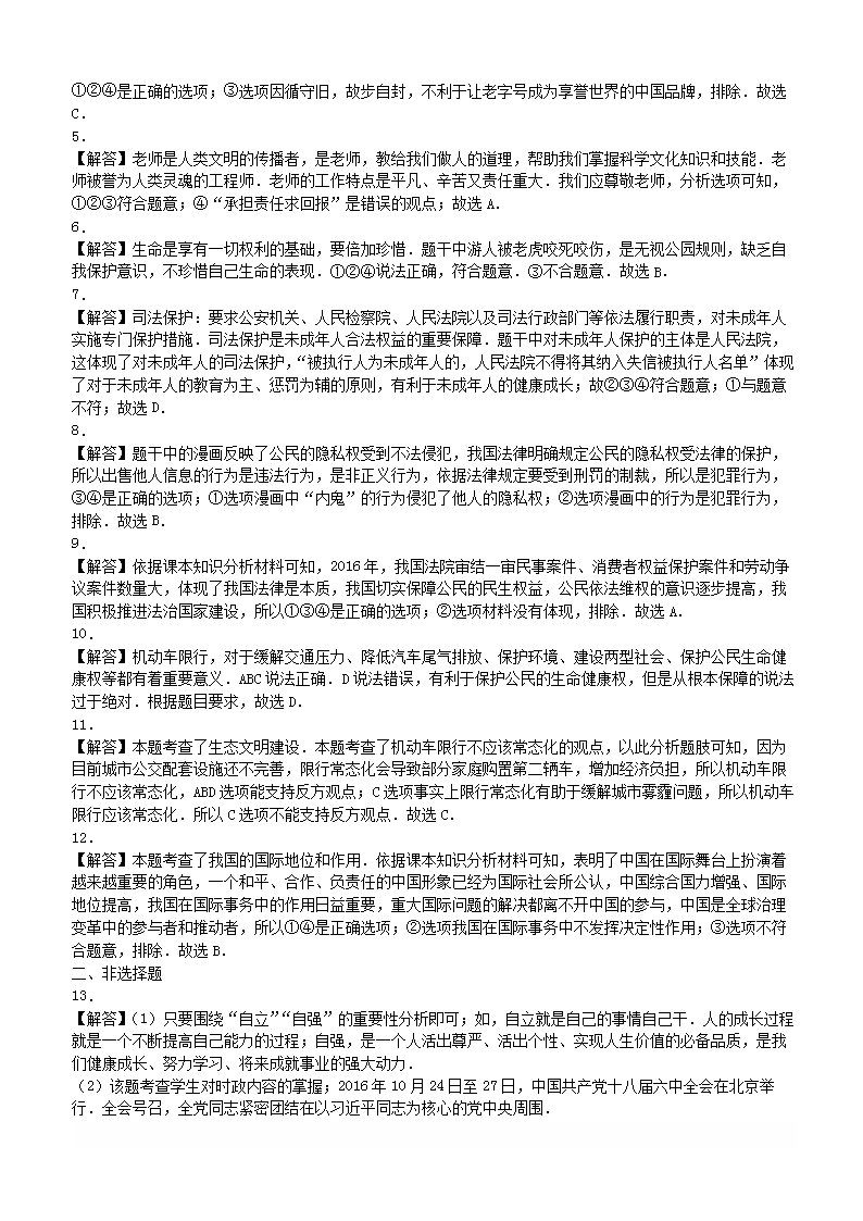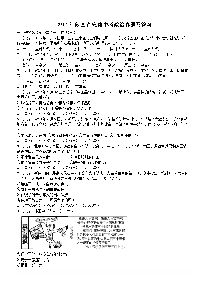 【文档名称】 2017年陕西省安康中考政治真题及答案(Word版).doc