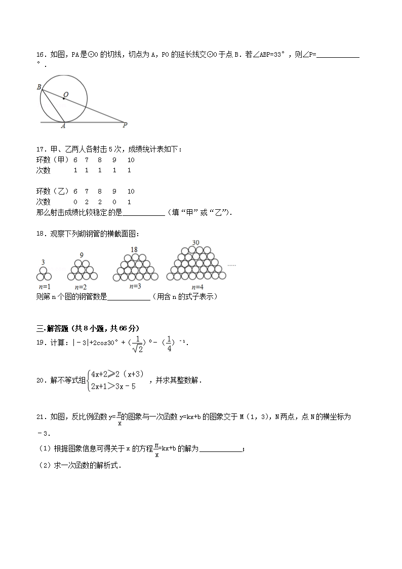 【文档名称】 2015年广西百色市中考数学真题及答案(Word版).doc