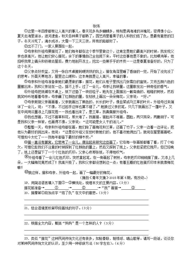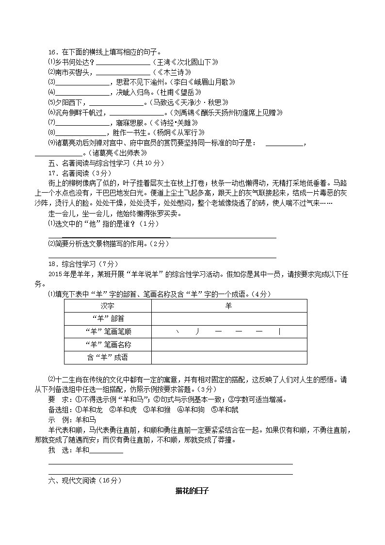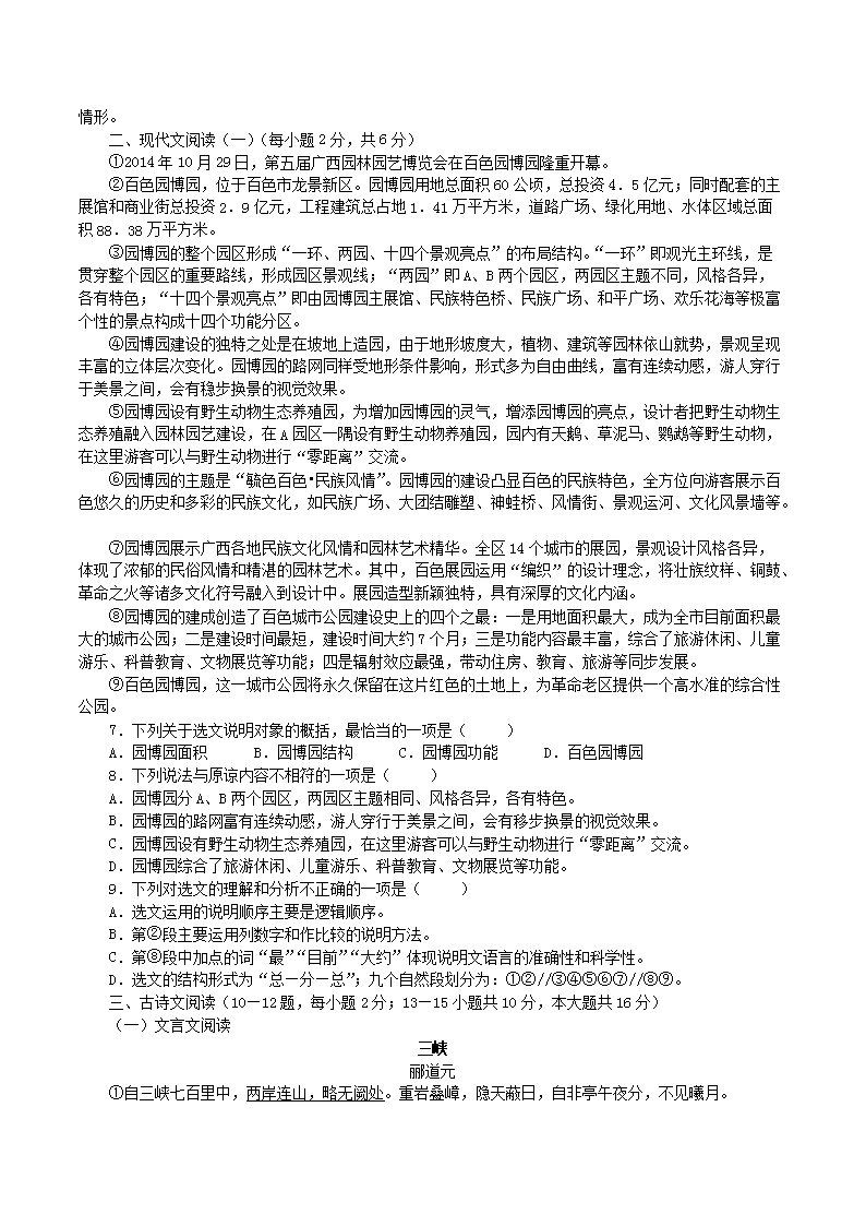 【文档名称】 2015年广西百色市中考语文真题及答案(Word版).doc