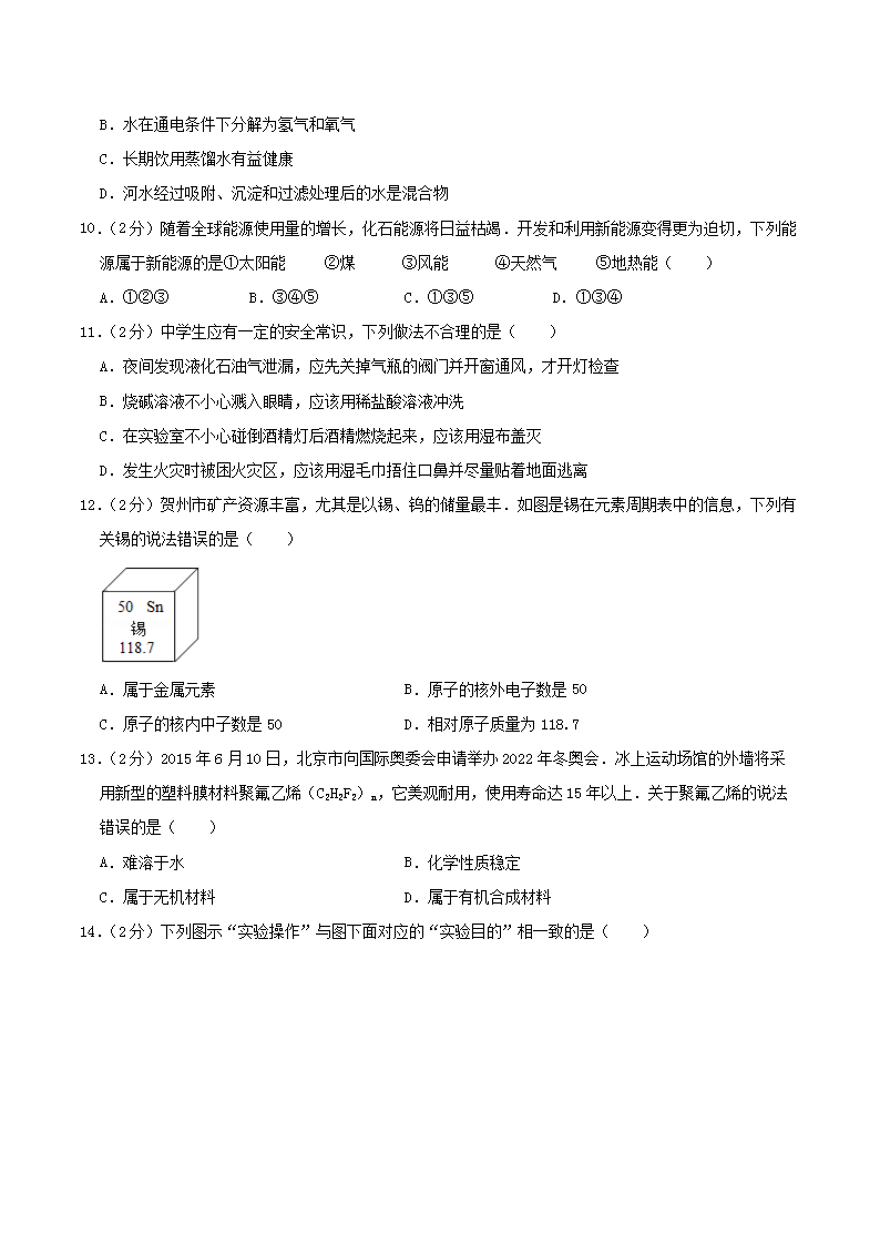 【文档名称】 2015年广西贺州市中考化学真题及答案(Word版).doc