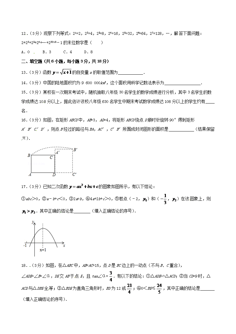 【文档名称】 2015年广西贺州市中考数学真题及答案(Word版).doc