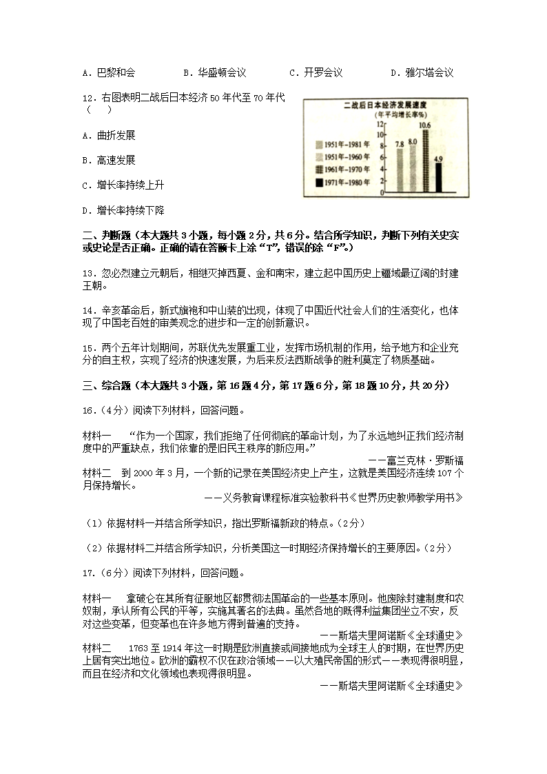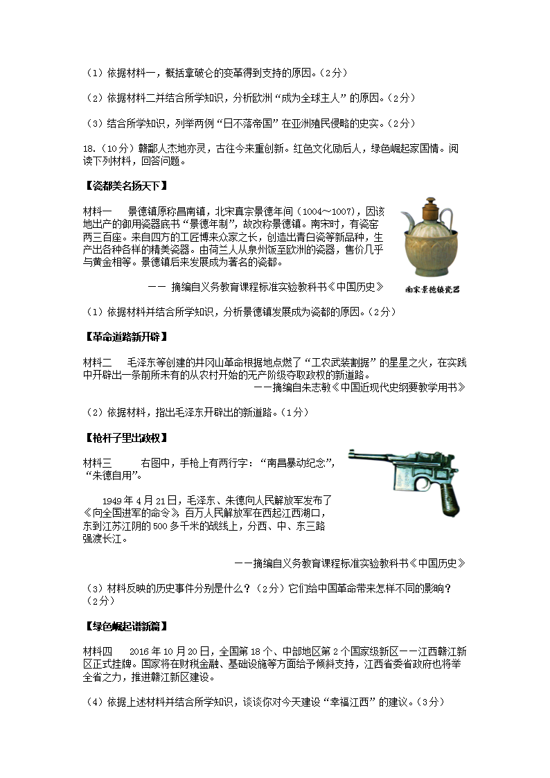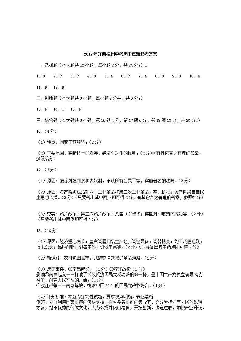 【文档名称】 2017年江西抚州中考历史真题及答案(Word版).doc