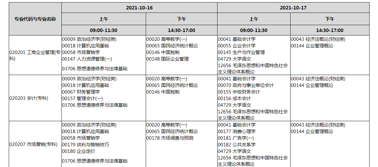 2021年下半年河南自考报名考试日程安排