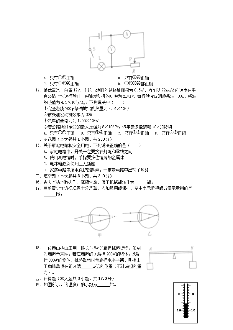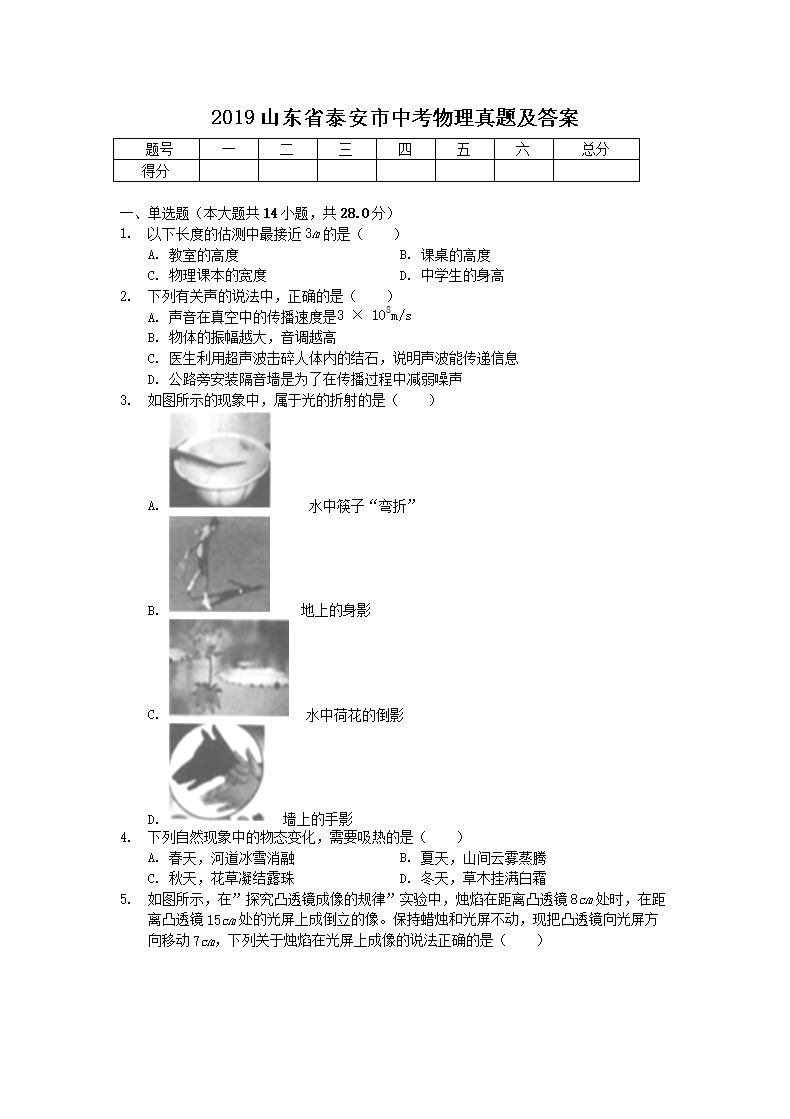 【文档名称】 2019山东省泰安市中考物理真题及答案(Word版).doc