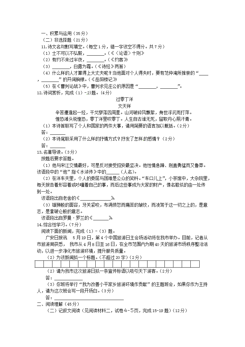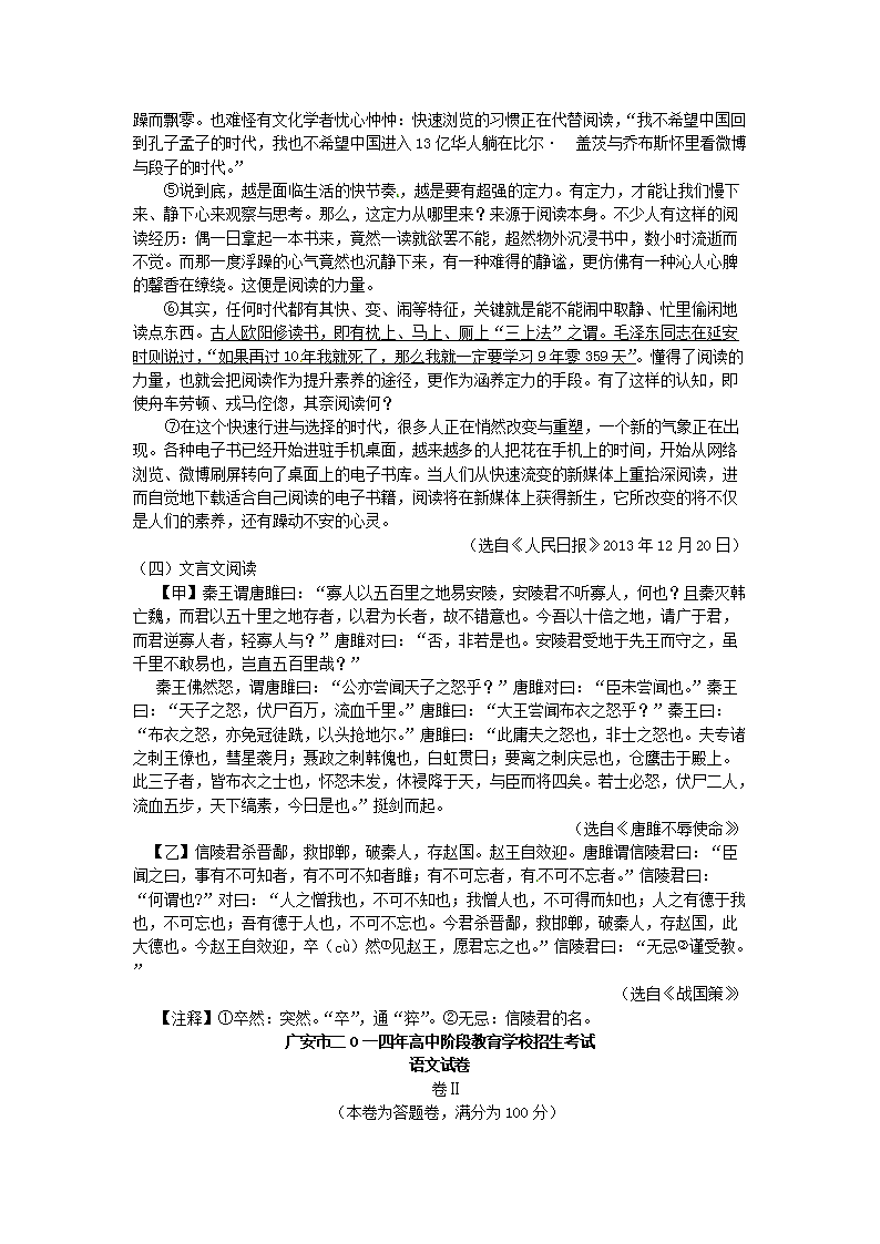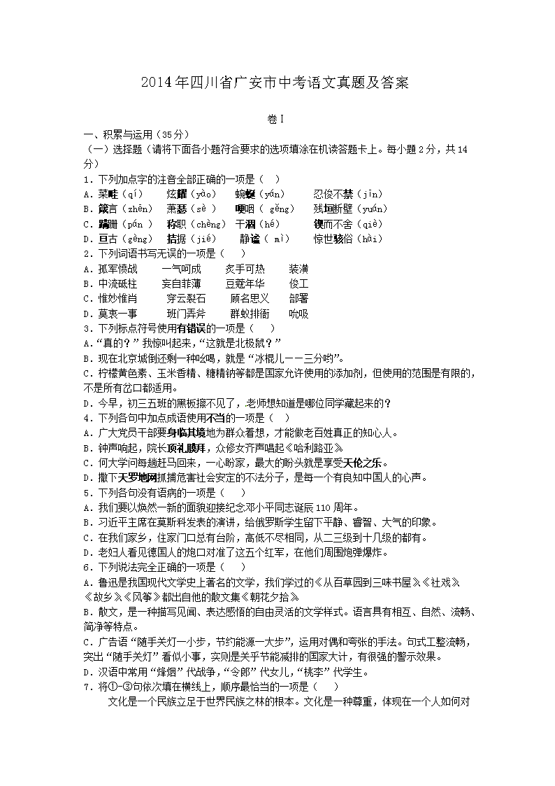 【文档名称】 2014年四川省广安市中考语文真题及答案(Word版).doc