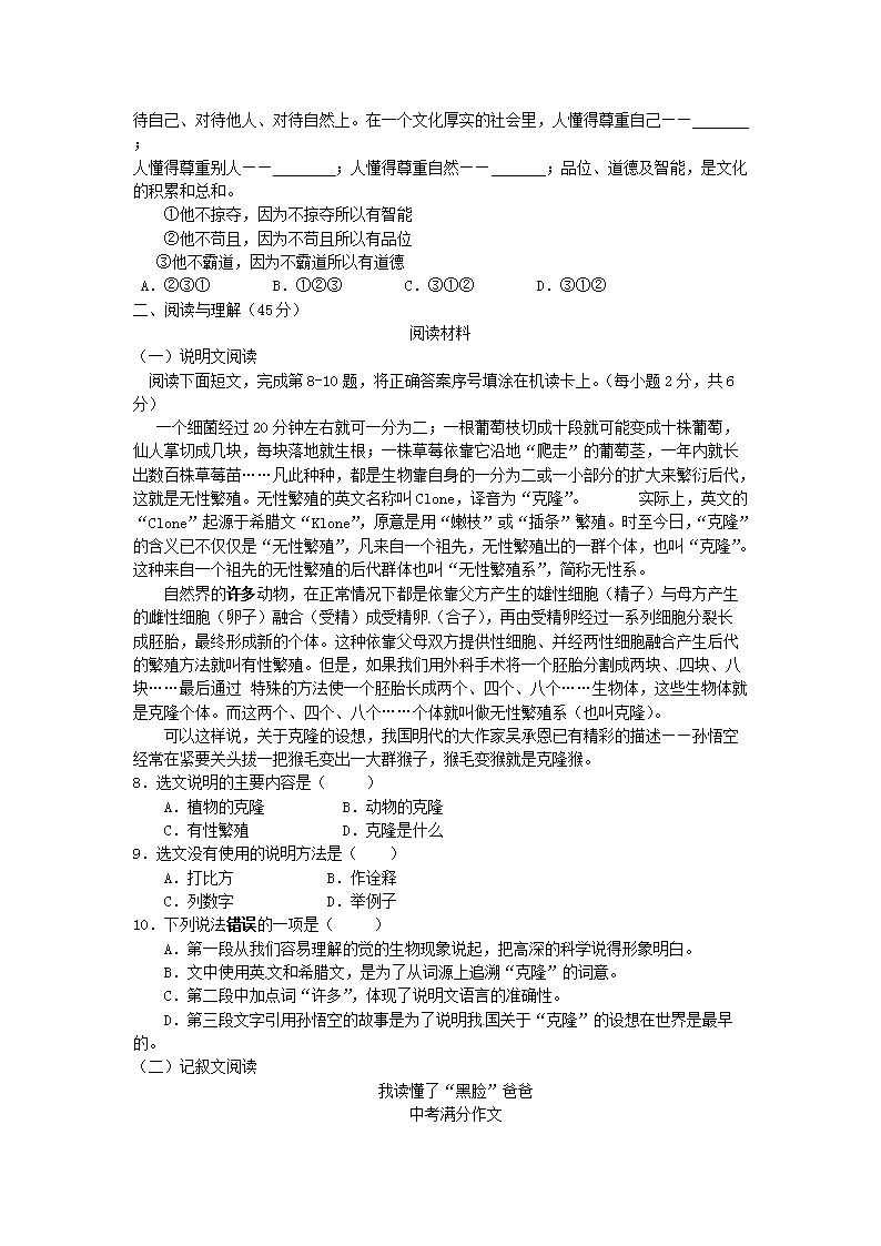 【文档预览】 无忧考网整理发布2014年四川省广安市中考语文真题及答案(Word版),前五页预览如下: