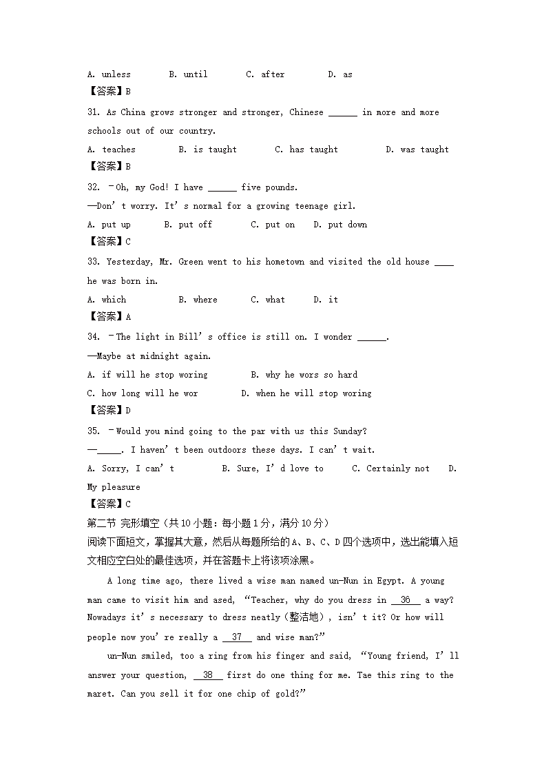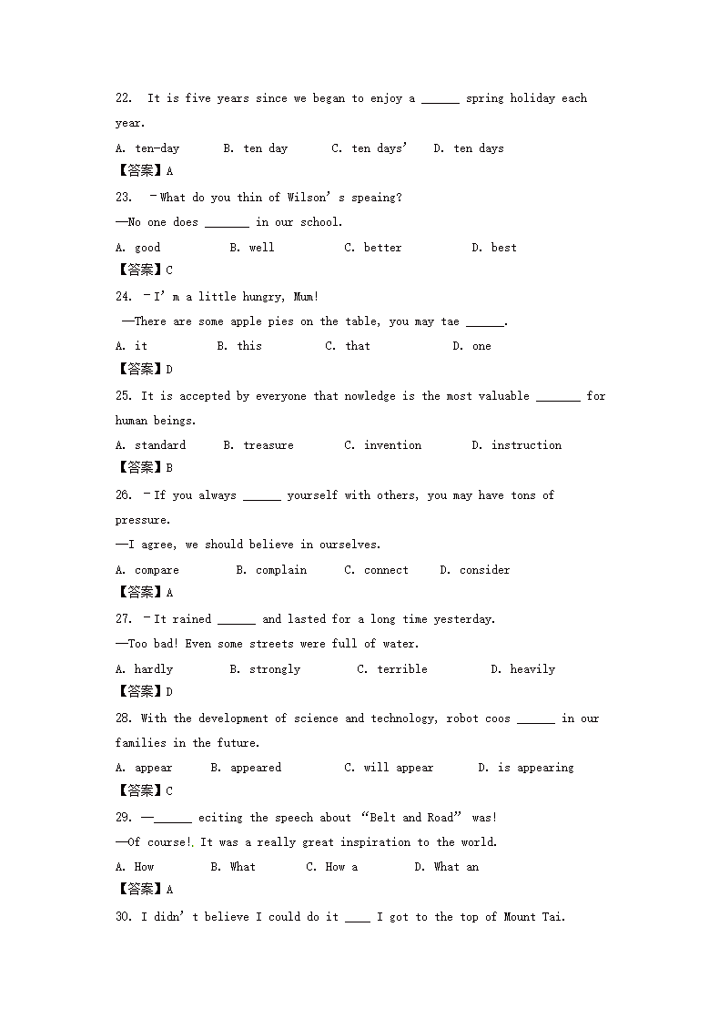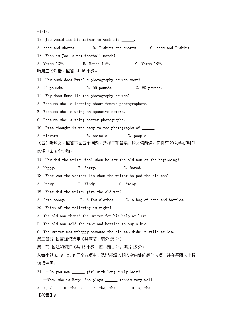 【文档预览】 无忧考网整理发布2017山东省泰安市中考英语真题及答案(Word版),前五页预览如下: