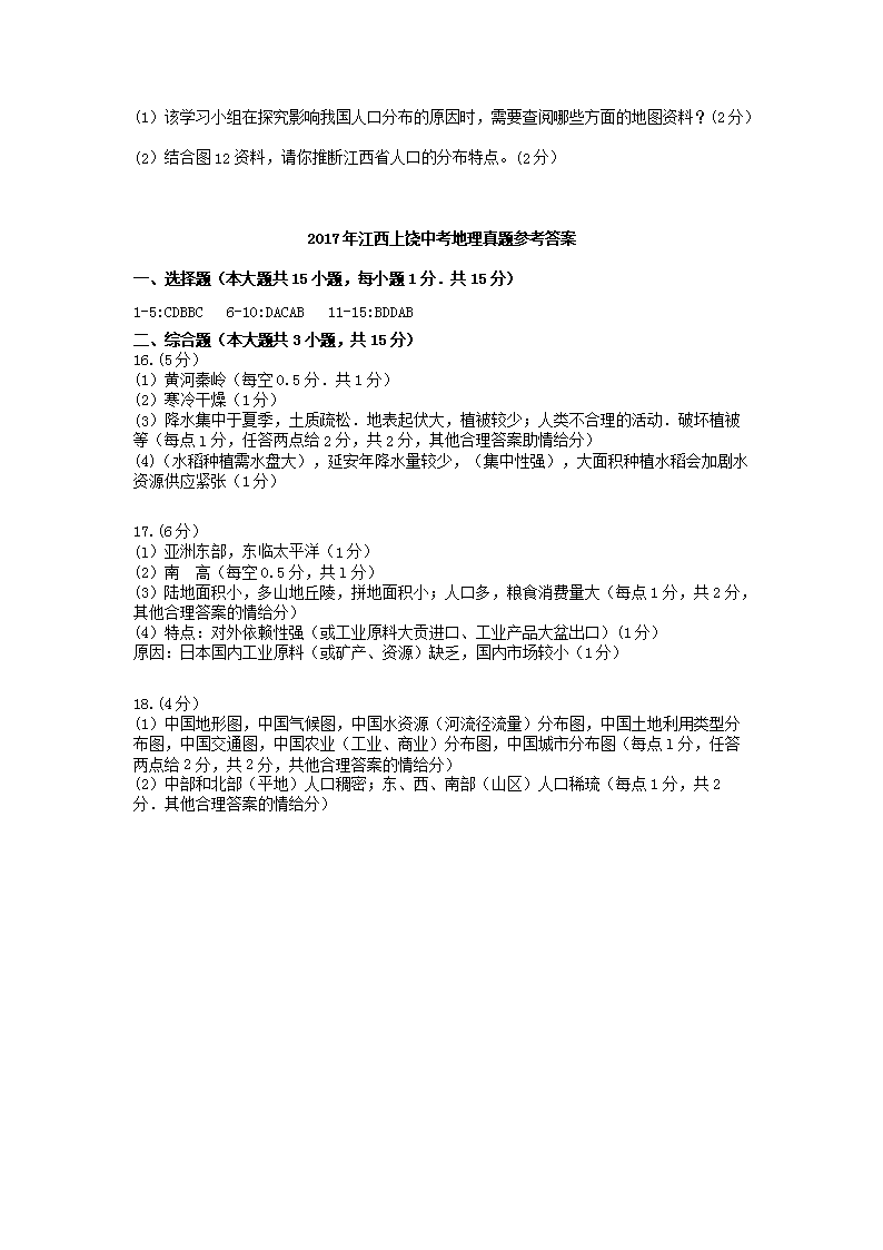 【文档预览】 无忧考网整理发布2017年江西上饶中考地理真题及答案(Word版),前五页预览如下: